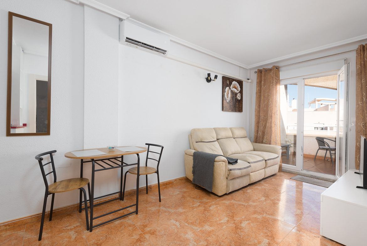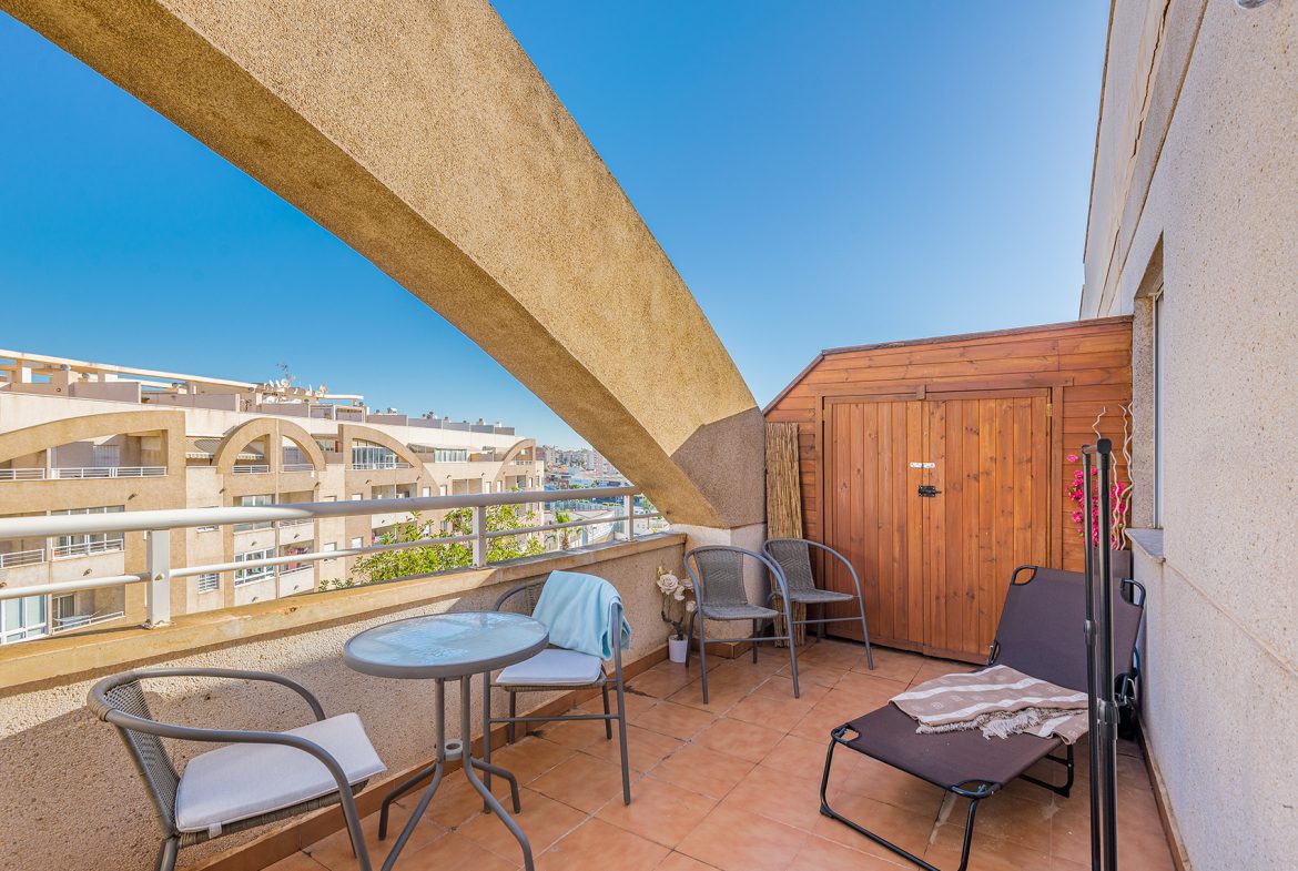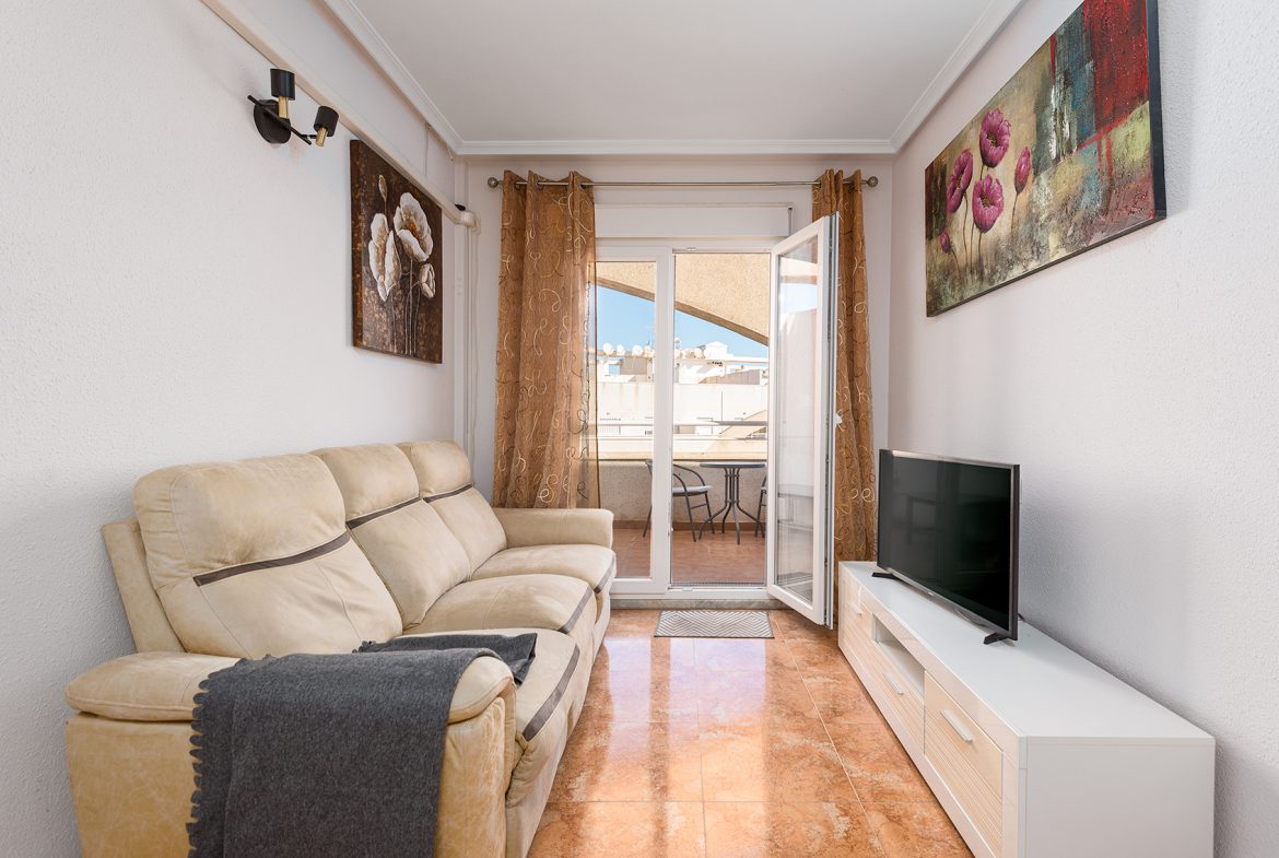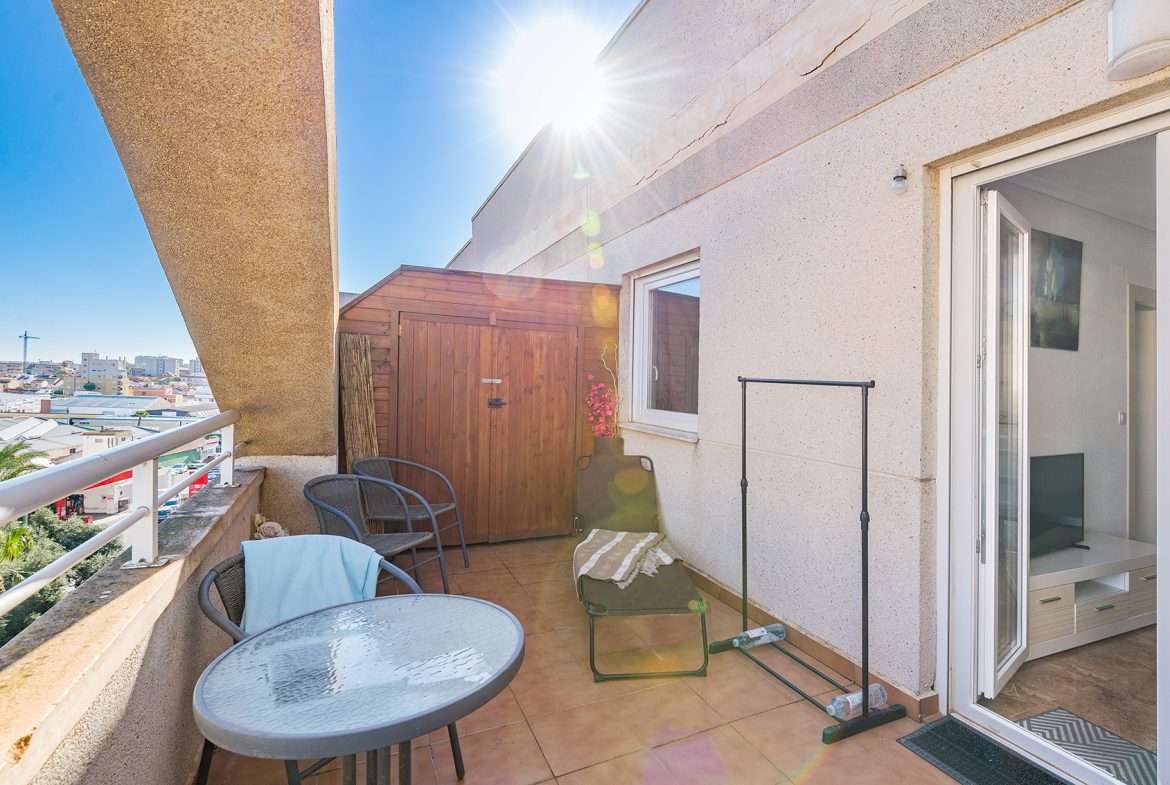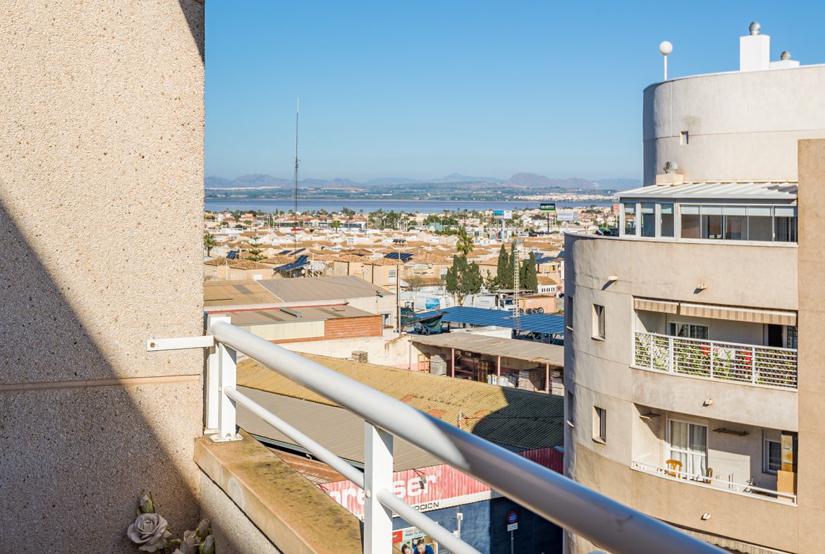 This bright top-floor apartment in downtown Torrevieja offers carefree living and modern comforts in an excellent location.