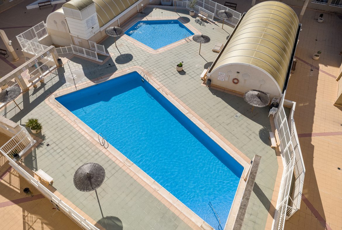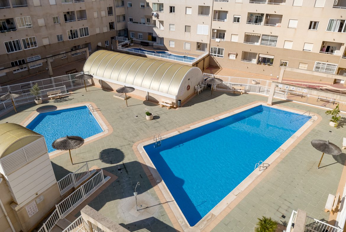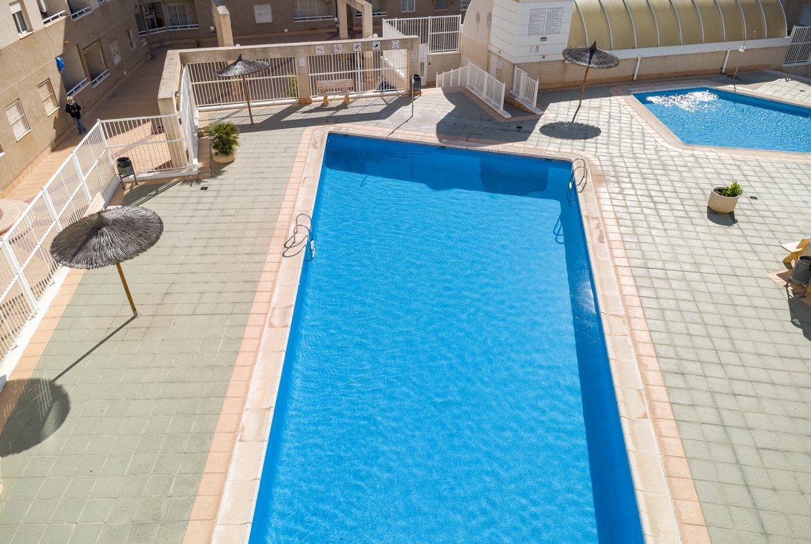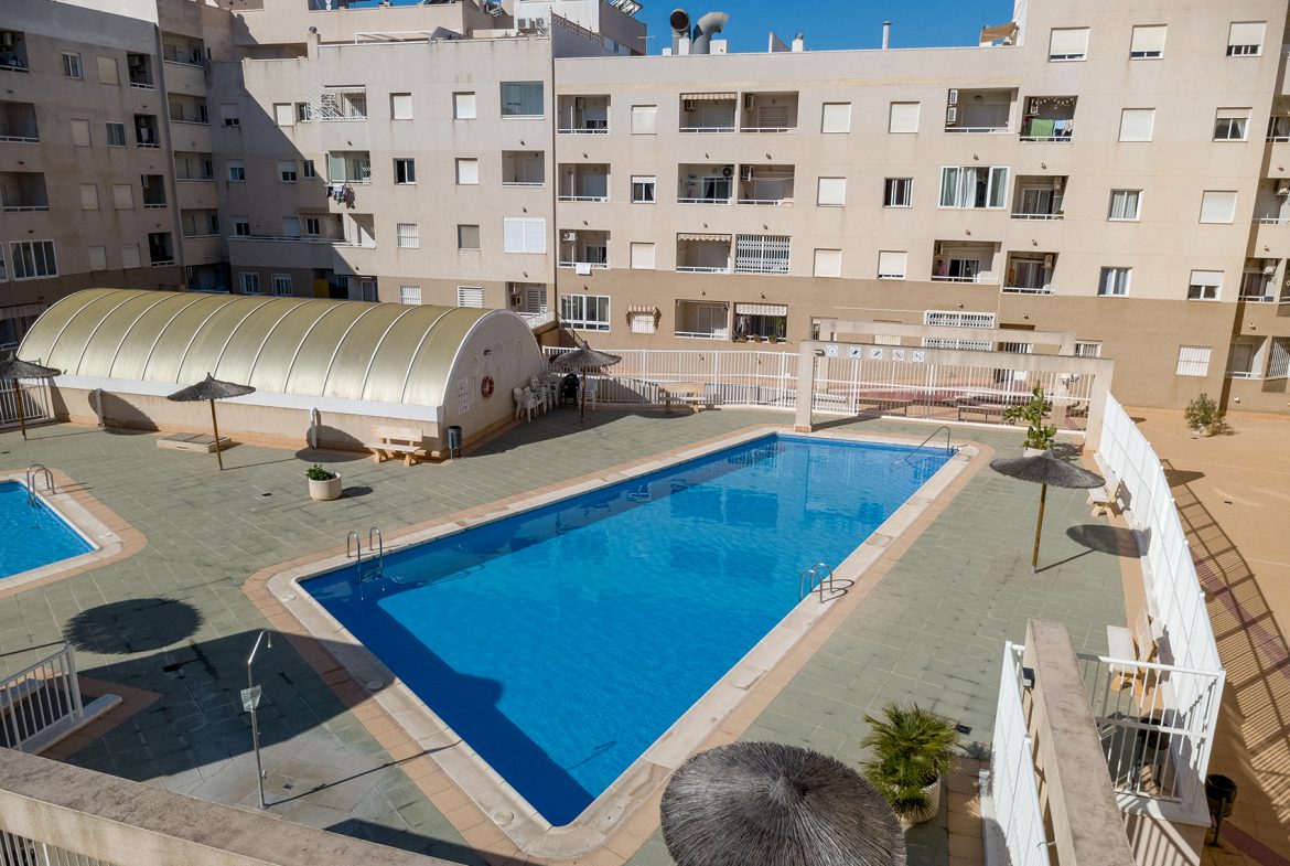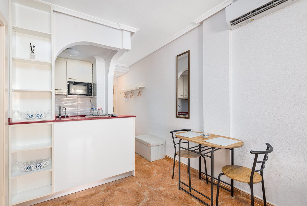 This bright top-floor apartment in downtown Torrevieja offers carefree living and modern comforts in an excellent location.